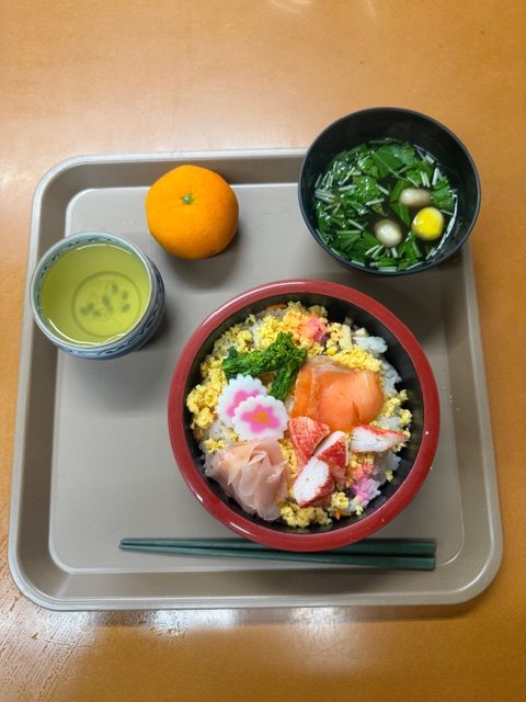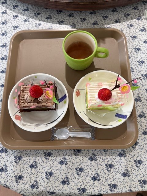 来友館では少しでも雰囲気を感じていただくためにチラシ寿司とケーキをお出ししました🍰